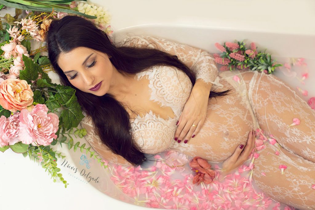 Fotos de embarazo en milk bath ó sesión de fotos dentro de la bañera.